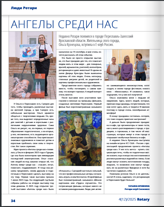 История проекта «Ангелы среди нас» началась в 2023г. и о ней подробно рассказано в статье октябрьского номера журнала «Ротари Россия« 4/2025.